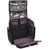 Perfect for the scrapper-on-the-go! This rolling tote is full of pockets, compartments, and elastic loops for all of your scrapping needs! The outside features a telescoping handle; attractive canvas with patent leather trim, 2 outer open pockets, and 2 zippered pouches containing loads of elastic loops for markers and other tools, a large zippered pocket on the front with flap covered vinyl pockets, an open vinyl pocket, and a mesh pocket. Inside features 4 expandable paper files, mesh pockets, and vinyl pockets with and without zipper closures. With inside main compartment measurements of 15" x 14" x 7-1/2". Many different die-cutting machines can fit inside. Tote measures 18-3/4" x 17-1/2" x 11-1/2". Available in Pink (black with hot pink, purple & white) and Green (black with blue, green & white), each sold separately.