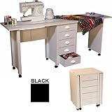 Fold out America.This dynamic and durable Mobile Desk features the highly popular "beadboard" sides and sturdy nylon handles.Beefy 2 inch thick legs give it a solid look and feel.Easy on the eyes as well as the pocketbook. Whether you want a sewing center, a handy organizer from which to pay bills or an extra desk for the home office, this Mobile Desk Double is perfect for the job. Opens on both sides to create over 8 sq. feet of work space!That's right, it opens to an impressive 72" wide, yet folds to only 29" high 19" wide x 18" deep.Six (6) dual-track carpet casters will let you roll it anywhere...to work, or out of sight. The 5 deep, roomy drawers (interior dimensions: 12 1/4"W x 13 1/2"D x 4 1/4"H) provide storage for just about anything you have in the way of office supplies or crafts.Constructed from durable melamine laminated particle board, the Mobile Desk Double is stain resistant, easy to clean and will offer a life time of reliable service.Available in BLACK, OAK, or WHITE. Assembly level/degree of difficulty: Moderate. Made in America